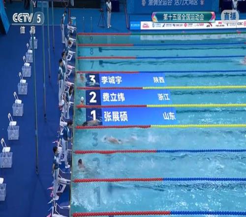 ▲汪顺 赛后汪顺亲吻泳帽,收获全场欢呼。出水后,这位31岁老将腰上显眼的肌贴,让人看得心痛不已。 就在男子400米个人混合泳决赛举行前的十五运会男子1500米自由泳决赛,山东队张展硕以 14:52.73 刷新个人最好成绩夺冠。他在本届全运会表现出色,已斩获男子400米自由泳、200米自由泳、800米自由泳及男子4×200米自由泳接力共四枚金牌,并三次刷新全国青年纪录。