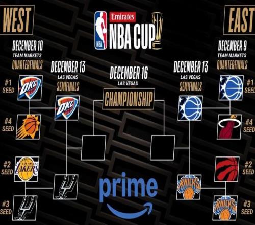 NBA杯四强出炉:雷霆vs马刺尼克斯vs魔术将诞生杯赛新王